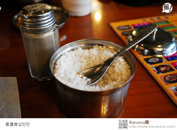 所謂雪濃湯其實是朝鮮漢字的「先農湯」, 先農祭時會飲用。此湯通常以長時間熬製,迫出骨頭中的味道,整個湯都是乳白色的,一般只用蔥和鹽調味。試第一口的時候,心中的反應是:「太淡了吧!」不過當你多喝兩口,就會發現那湯其實是很鮮味的。